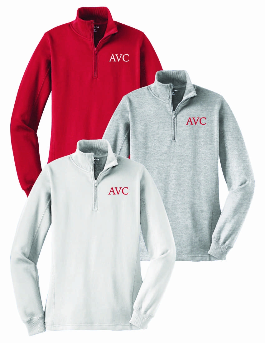 A stylish feminine fit and flatlock stitching details make this sweatshirt stand out. A rib knit cadet collar and 1/4-zip add to its appeal.